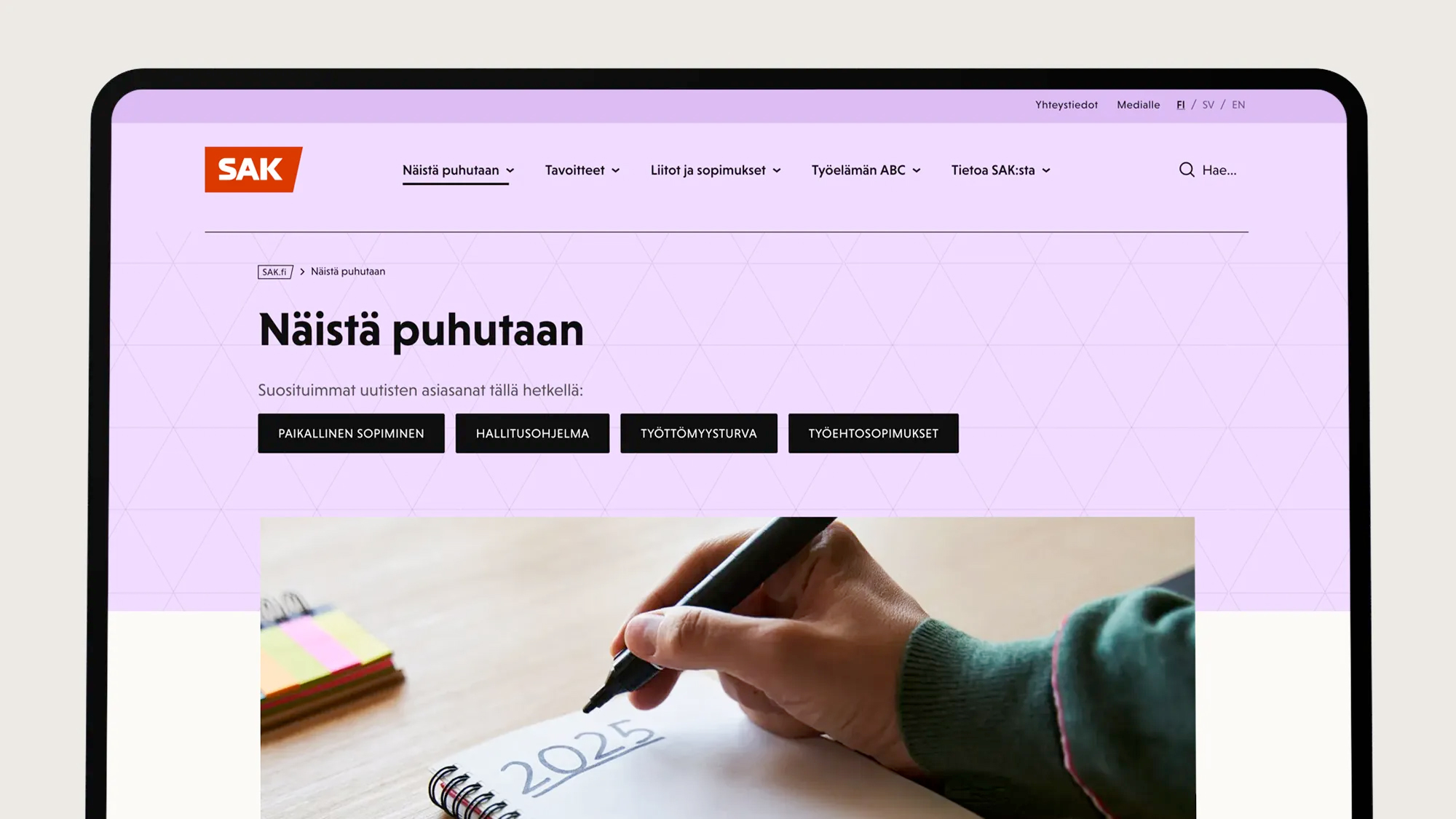 Visual identity refresh and website for the Central Organisation of Finnish Trade Unions (SAK)